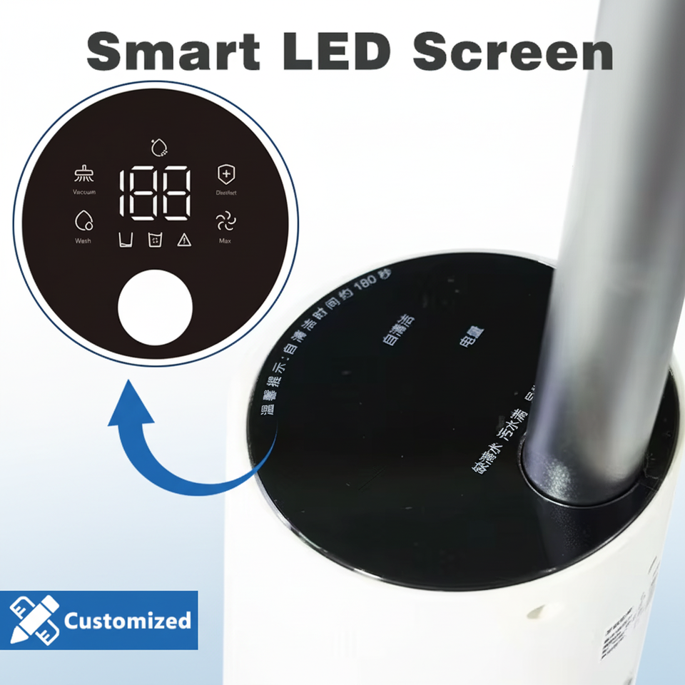 LED display:Battery level, Cleaning mode, Roller brush jam alert