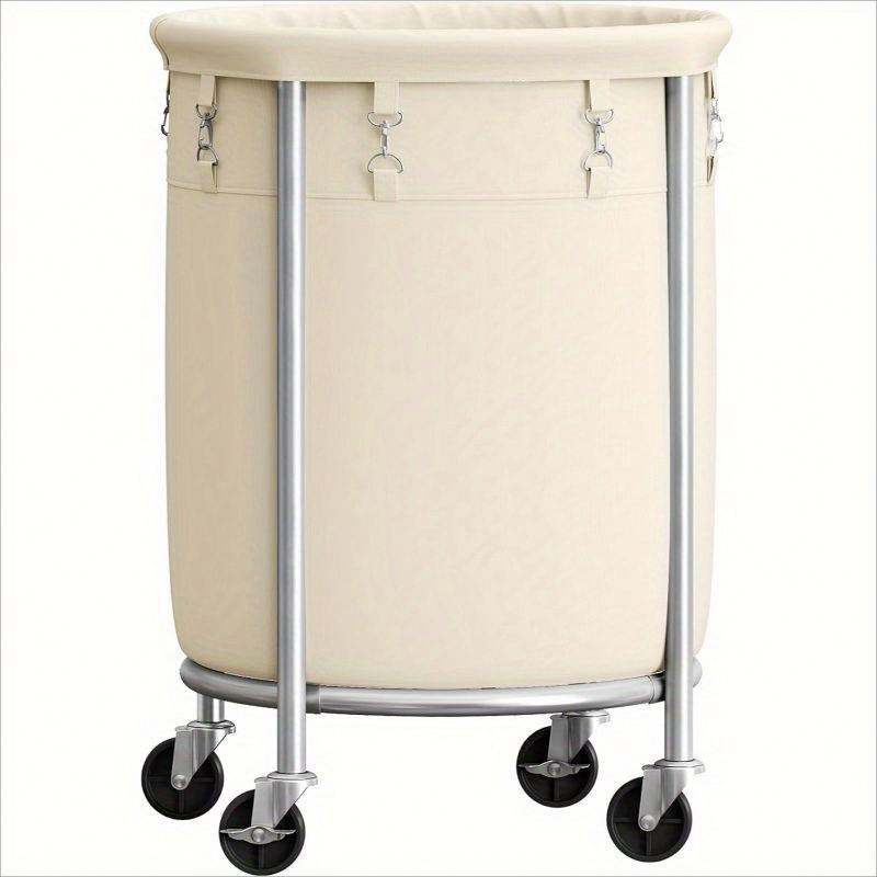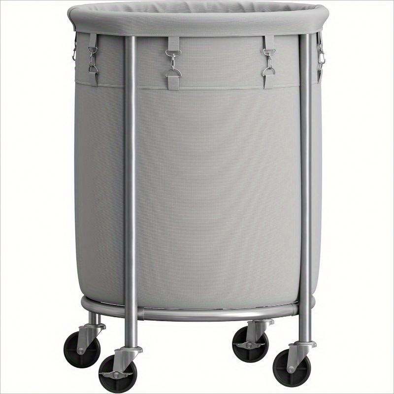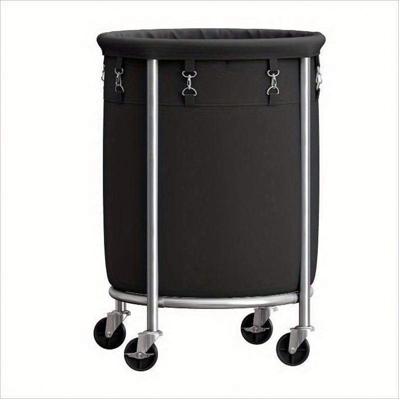 Panier à linge roulant de 170 L avec sac amovible et cadre en acier, chariot à linge rond avec 4 roulettes