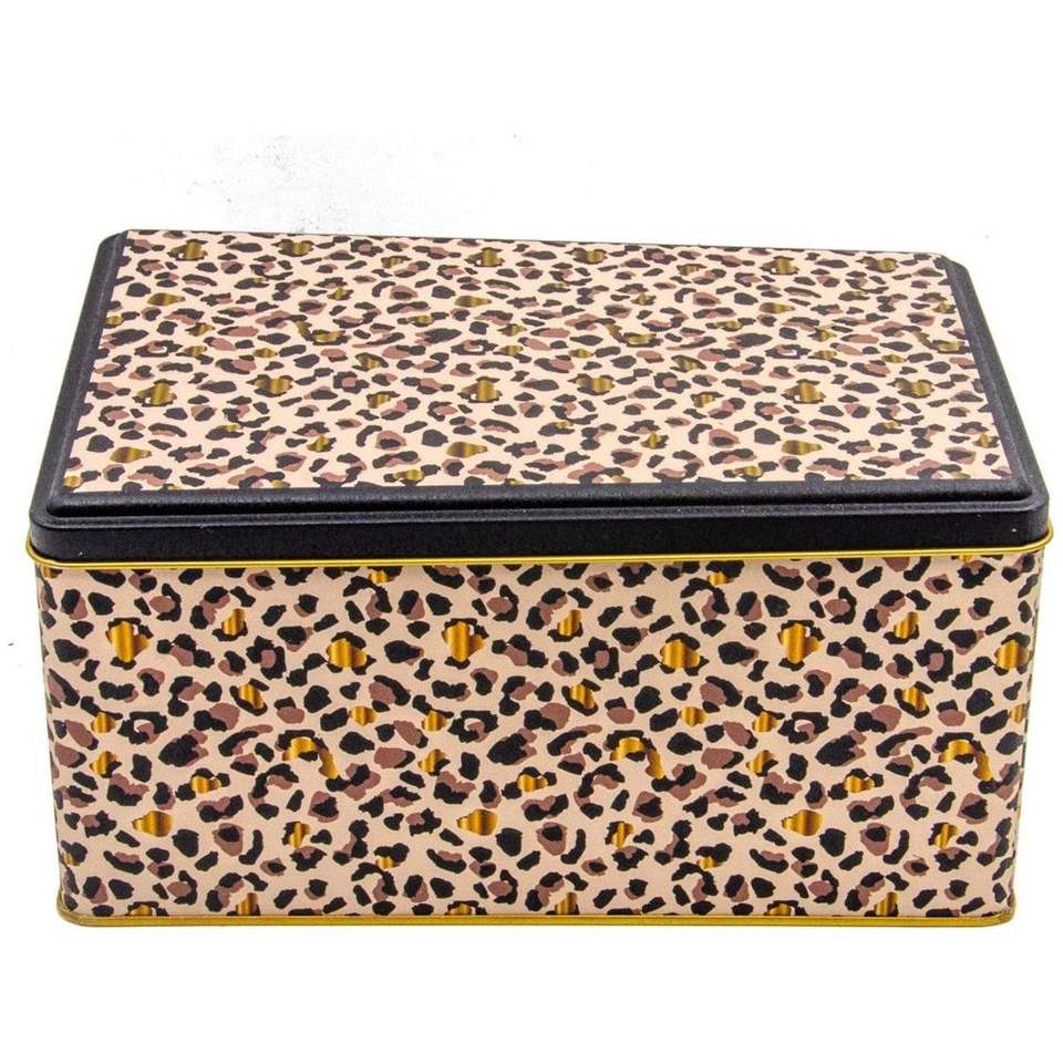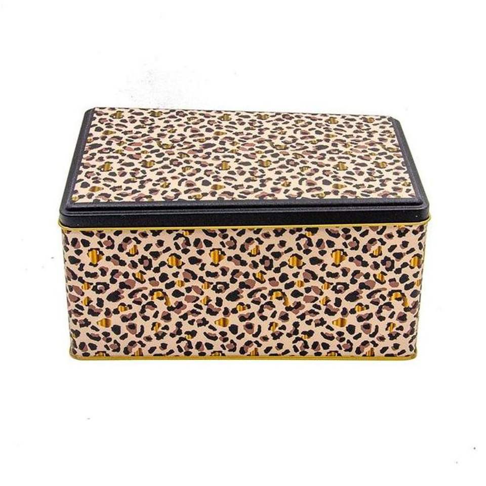170x260x100mm Boîte de rangement rectangulaire en métal à motif léopard doré avec couvercle coulissant Capacité de 5,1 L