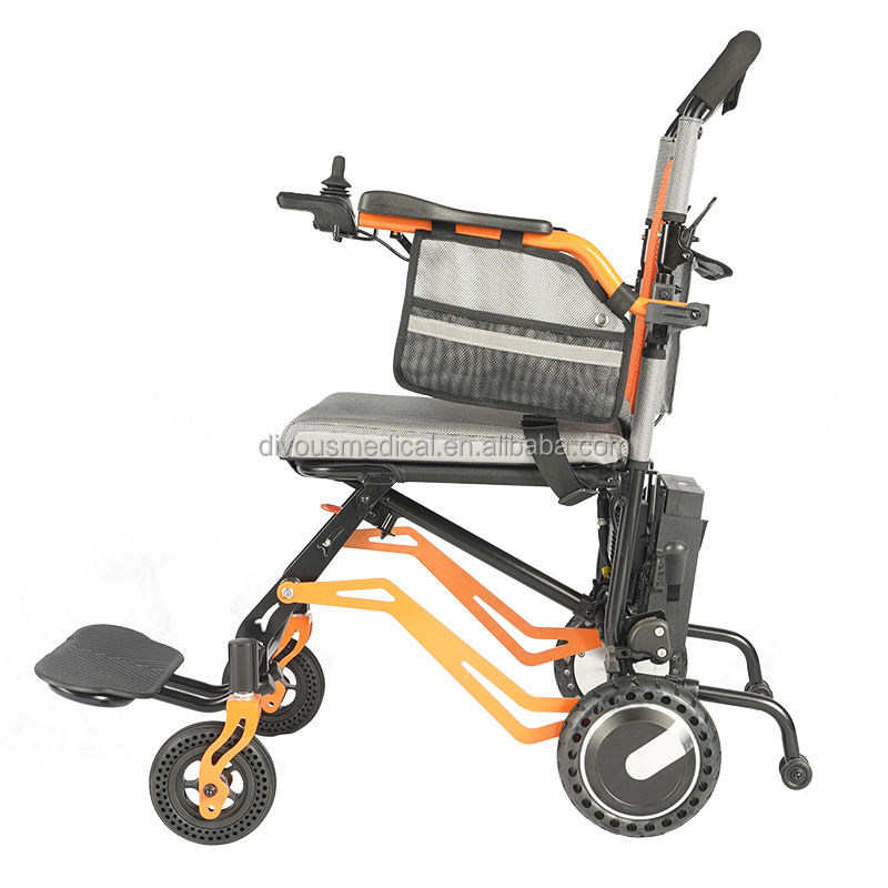Nouveau design de fauteuil roulant électrique pliable léger et ultra-léger de 17kg pouvant être utilisé à bord.