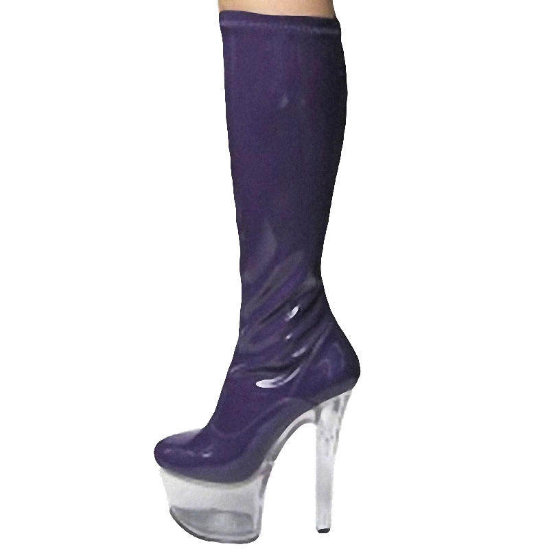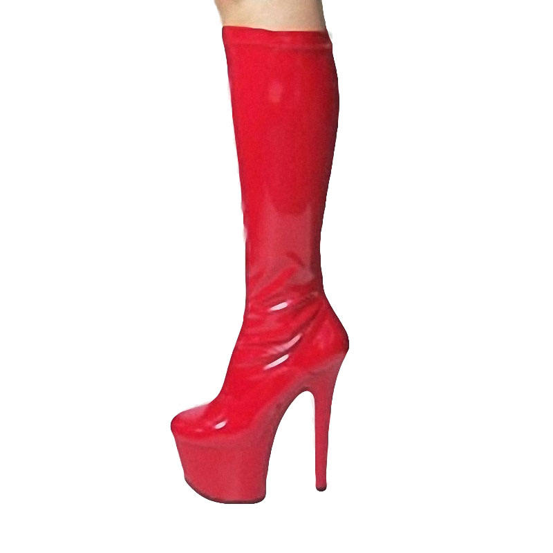 Bottines à talons hauts de 17 cm, bottes hautes pour femmes de 7 pouces, multicolores, en similicuir, à revers noir, sexy
