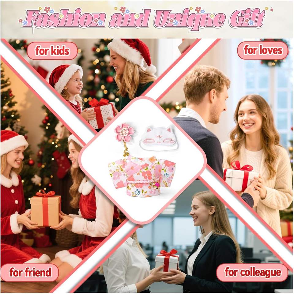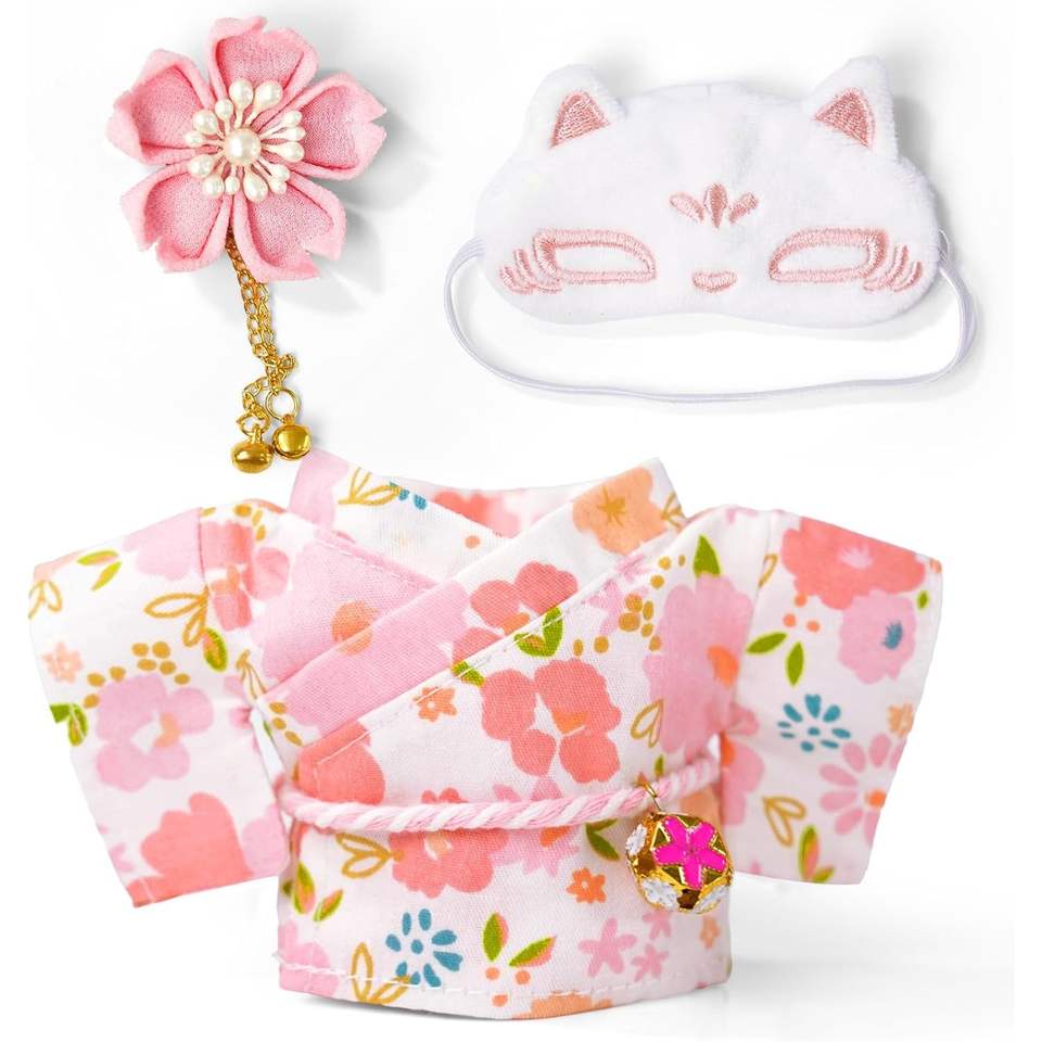 Ensemble Kimono Rose Chic Kawaii de 17 cm pour Poupées, Comprend un Joli Masque et un Accessoire Cheveux Fleur pour les Filles de 3 Ans et Plus
