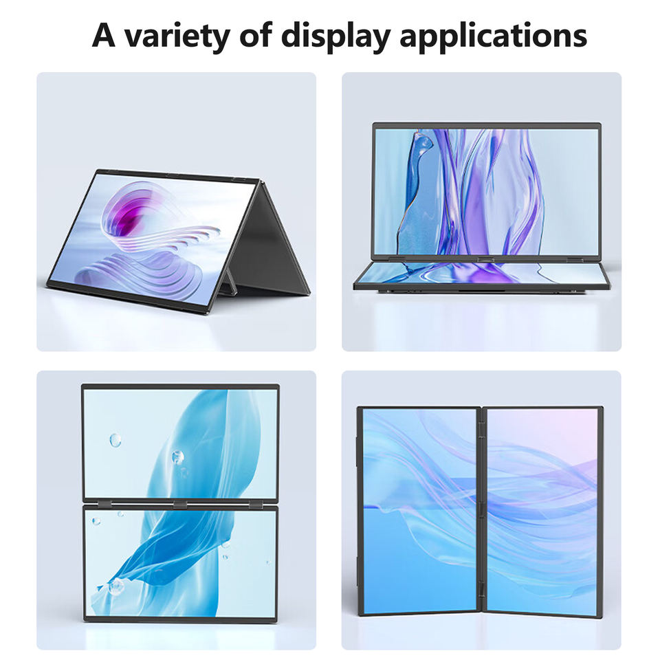 Moniteur portable double 18,5 pouces pour ordinateur portable, 100 Hz, 1080p, USB-C, écran LCD IPS pliable à 360°, support d'affichage externe pour entreprise