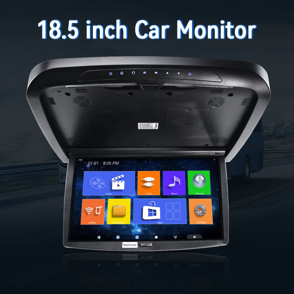 Écran tactile IPS de 18,5 pouces, lecteur multimédia motorisé pour montage au plafond, compatible avec les camping-cars, les voitures et les téléviseurs