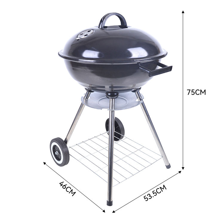 Chariot de 18 pouces à 4 pieds Barbecue à charbon de bois portable noir Bouilloire d'extérieur Barbecue Grill