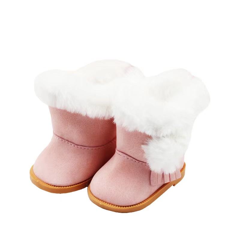 Chaussures de poupée américaine de 18 pouces, bottes de neige d'hiver rouge blanc noir brossé