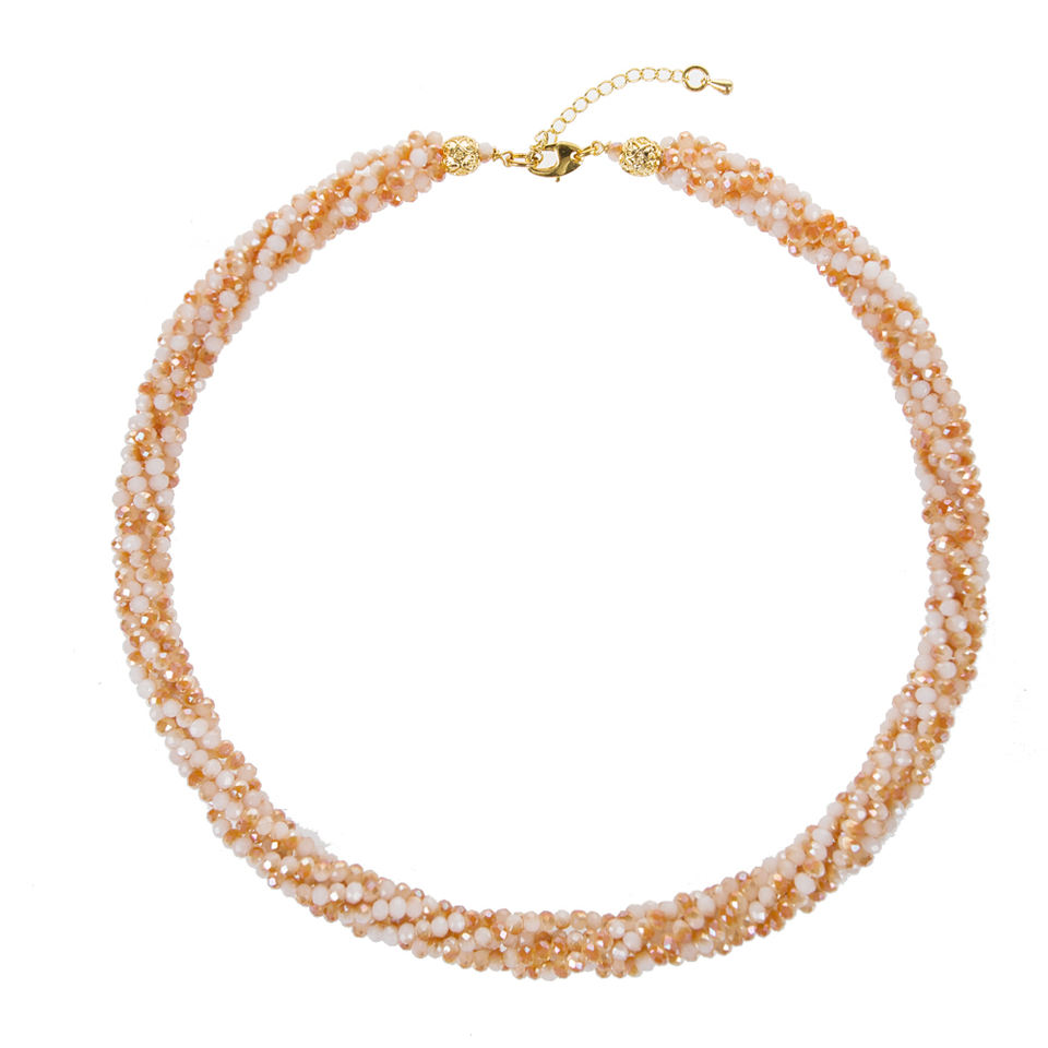 Collier en cristal de verre abricot de 18 pouces avec 4 rangées de perles facettées torsadées, colliers en cristal de 3 mm