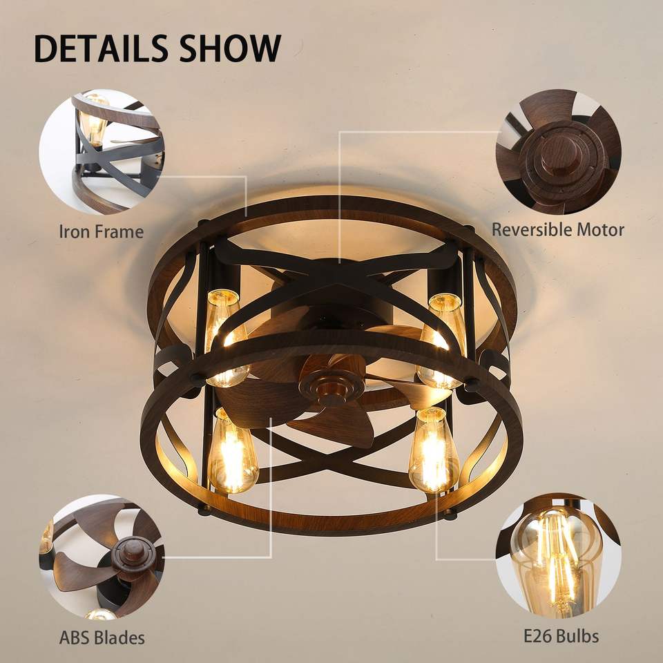 Ventilateur de plafond en cage de 18 pouces avec lumière et télécommande compatible avec APP sans garantie sur les ampoules