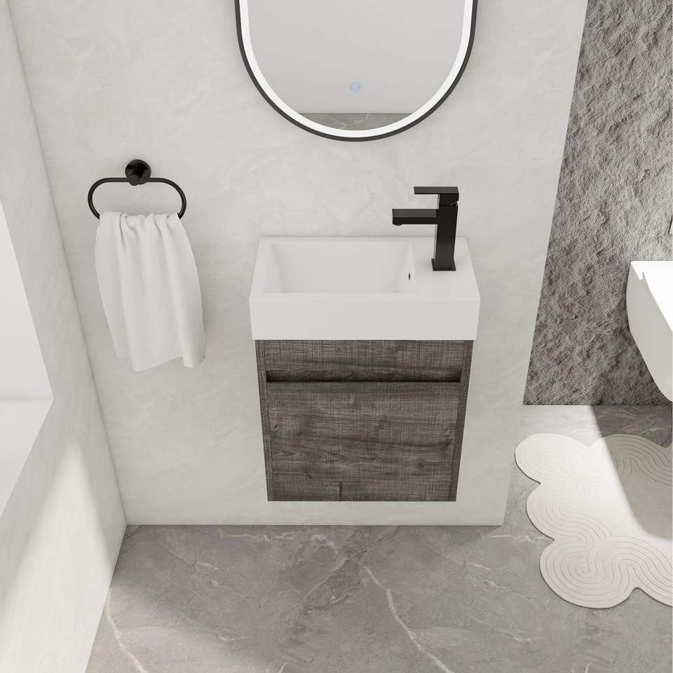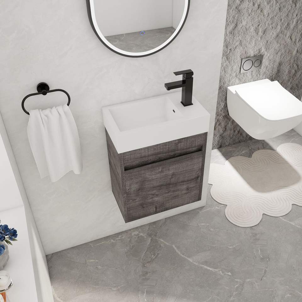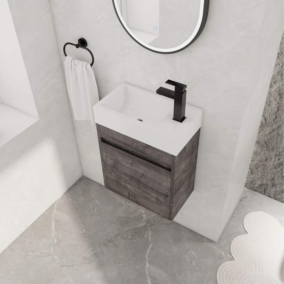Meuble-lavabo mural flottant de 18 pouces avec vasque en résine blanche et porte de placard à fermeture douce
