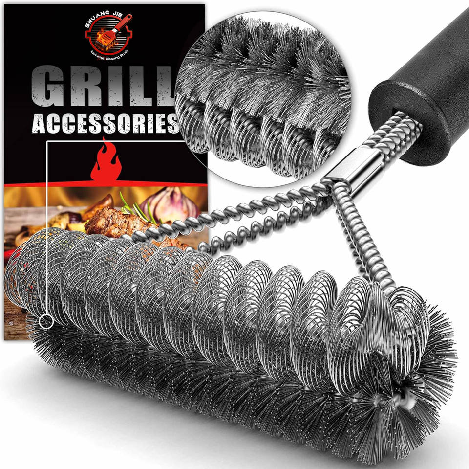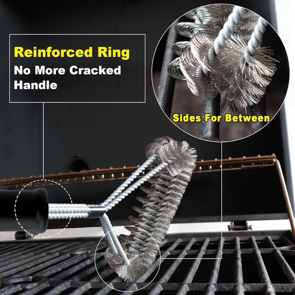 Brosse de nettoyage pour barbecue de 18 pouces [Fil métallique + Hélice] – Brosse à gril combinée sûre et efficace à long manche, pour grils à gaz et en porcelaine