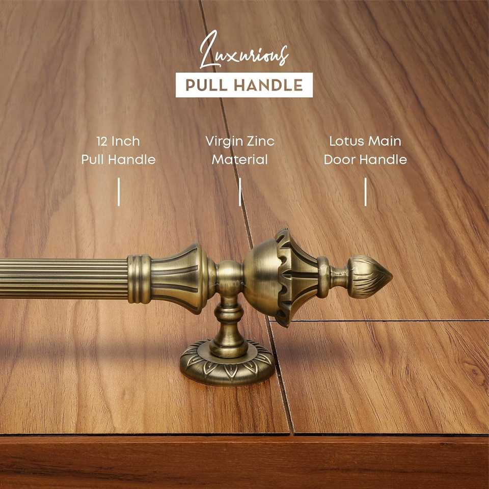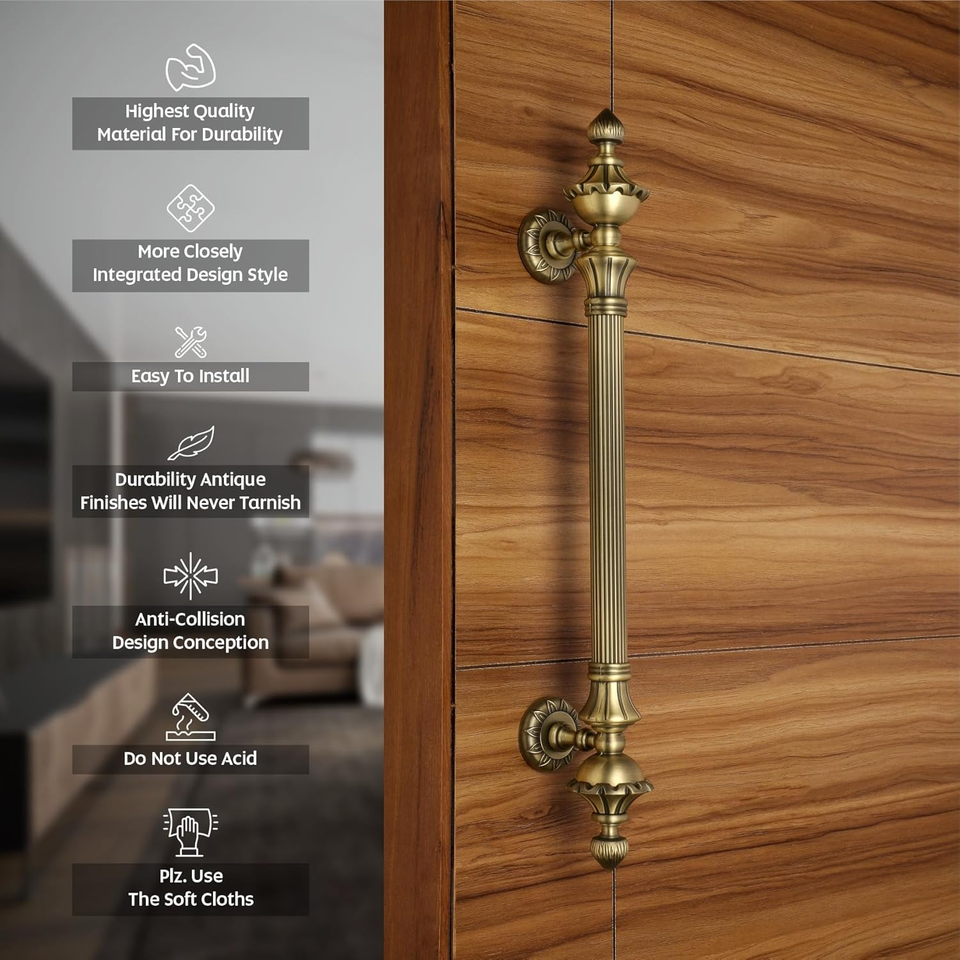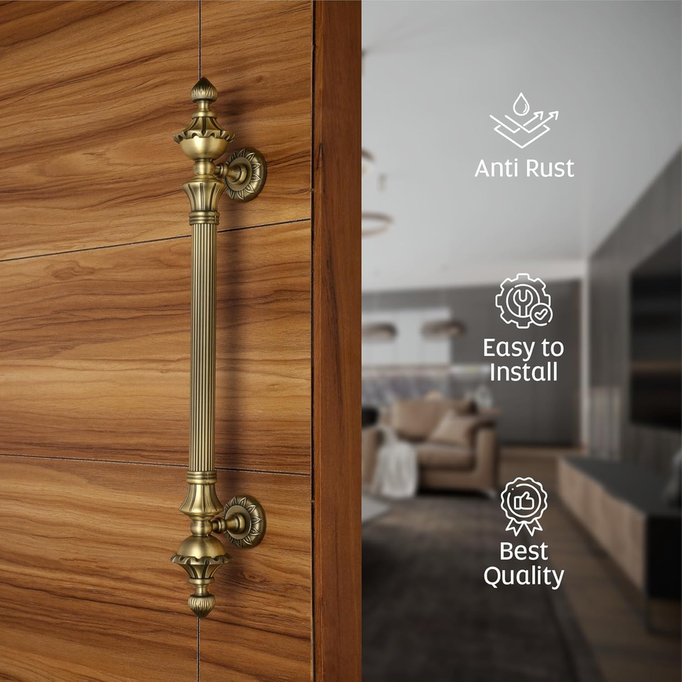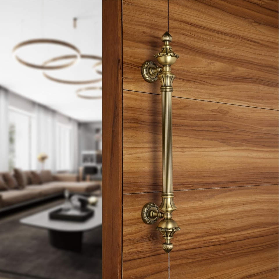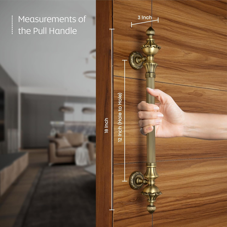 Poignée de porte principale de 18 pouces en alliage de zinc, finition antique, distance entre les trous de 12 pouces, poignée de porte durable, garantie de 3 ans