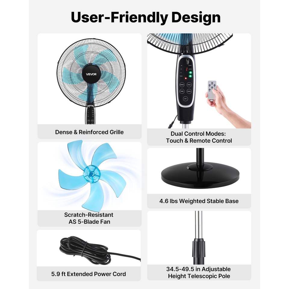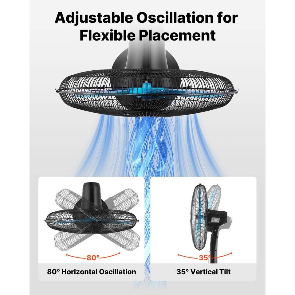 Ventilateur sur pied de 18 pouces avec 2700 CFM, 9 vitesses, 3 modes silencieux, télécommande, oscillation, hauteur réglable, ventilateurs tour et sur pied