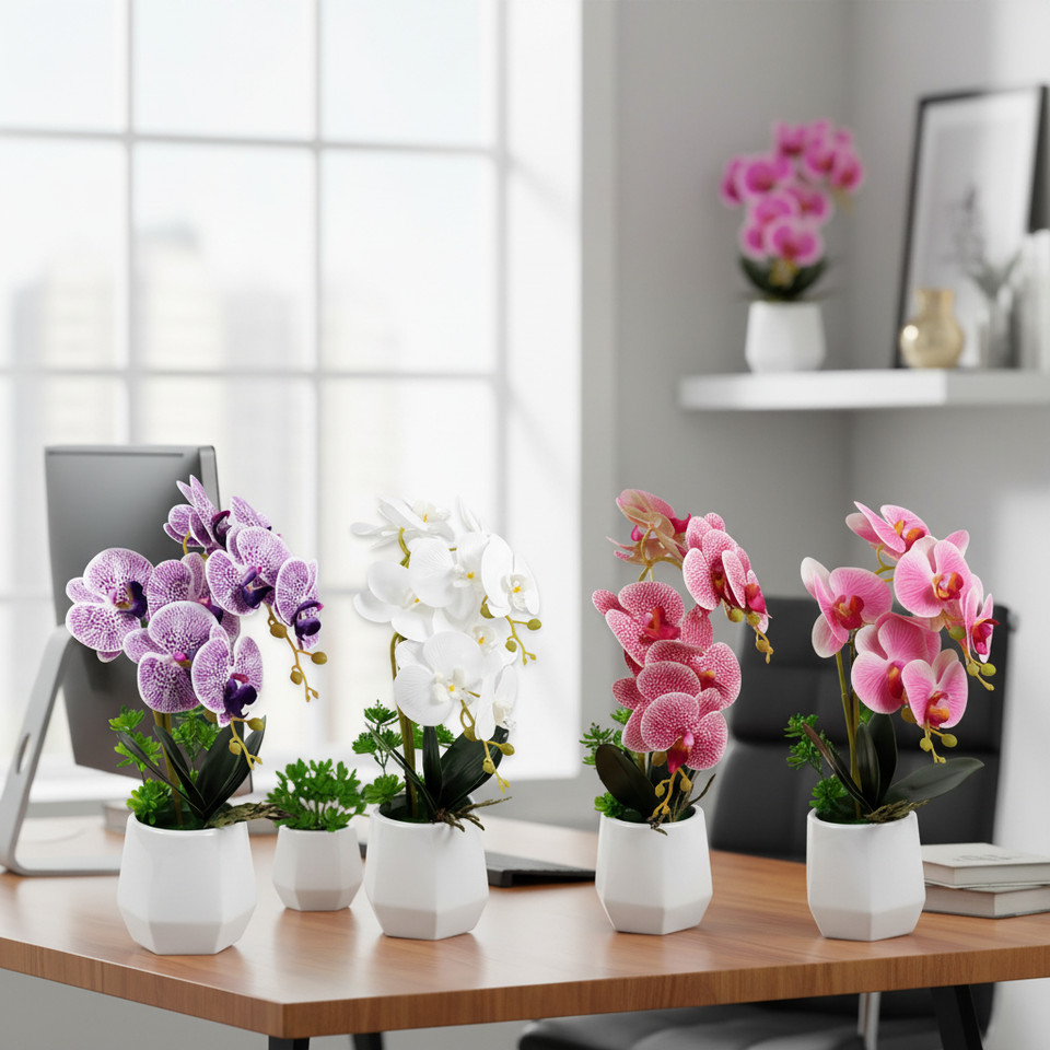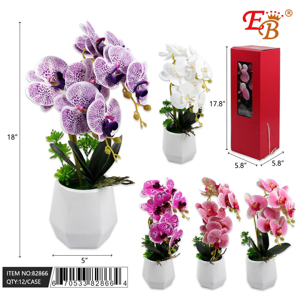 Orchidée artificielle de 18 pouces avec pot, 12 pièces/boîte, élégante décoration de bureau et accessoire, modèle 82866