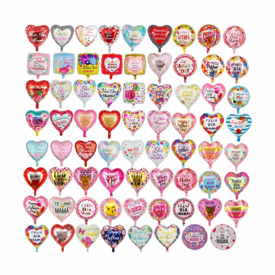 Ballons en aluminium durables de 18 pouces, style espagnol-anglais, en forme de cœur et carrés, pour décorations de fête de la Fête des Mères et promotions de vacances