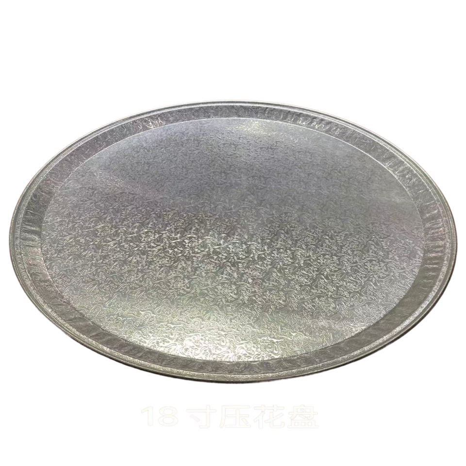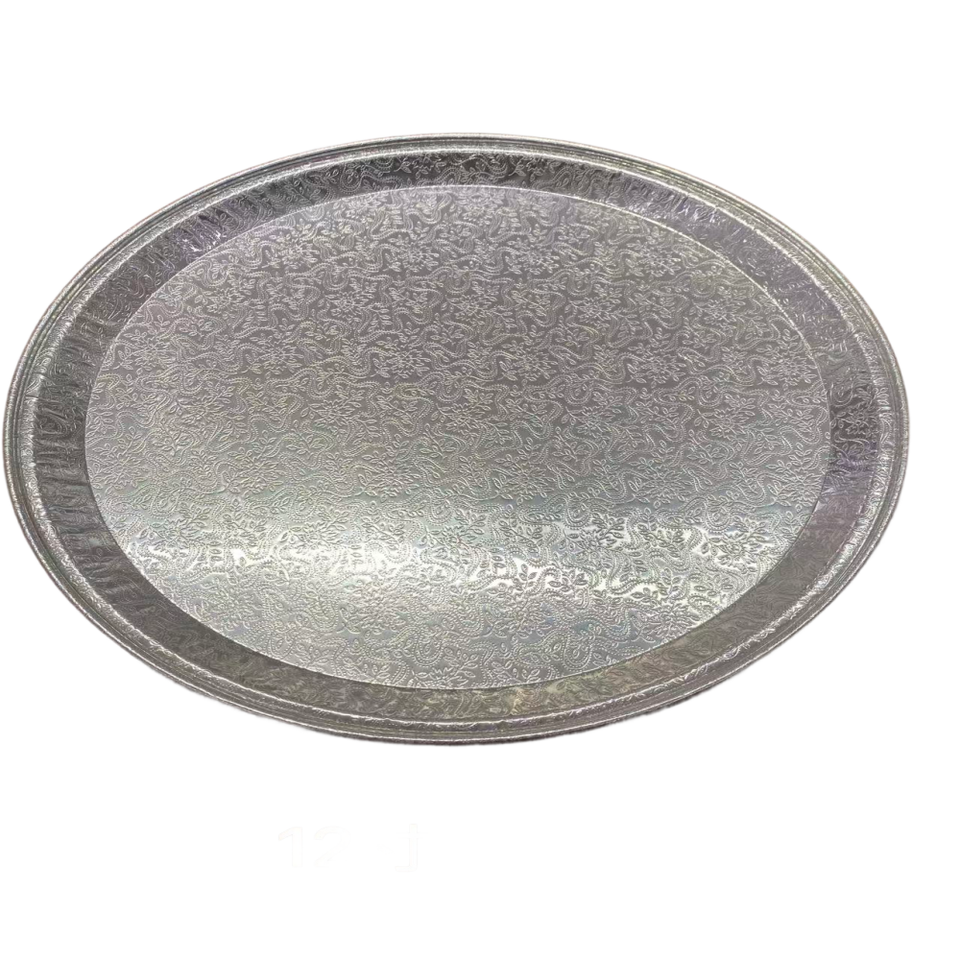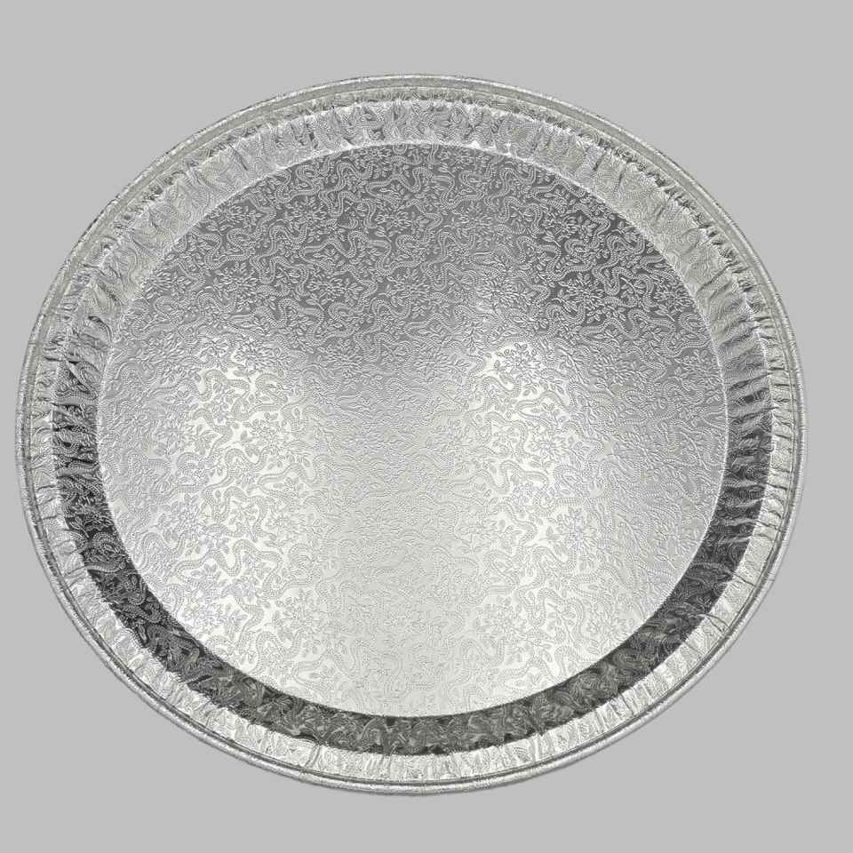 Plateau de cuisson rond en aluminium jetable de qualité alimentaire de 18 pouces, gaufré, plat, en plastique PET, type conteneur pour animaux de compagnie