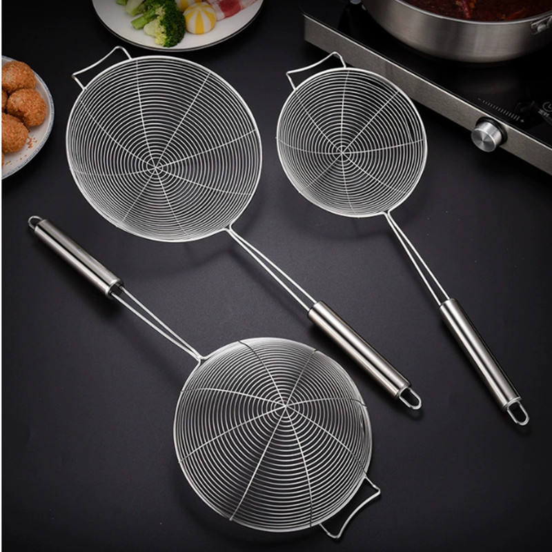 18 # Grande passoire de cuisine en acier inoxydable Passoire en métal domestique Filet filtrant pour boulettes Panier d'égouttage pour marmite frite