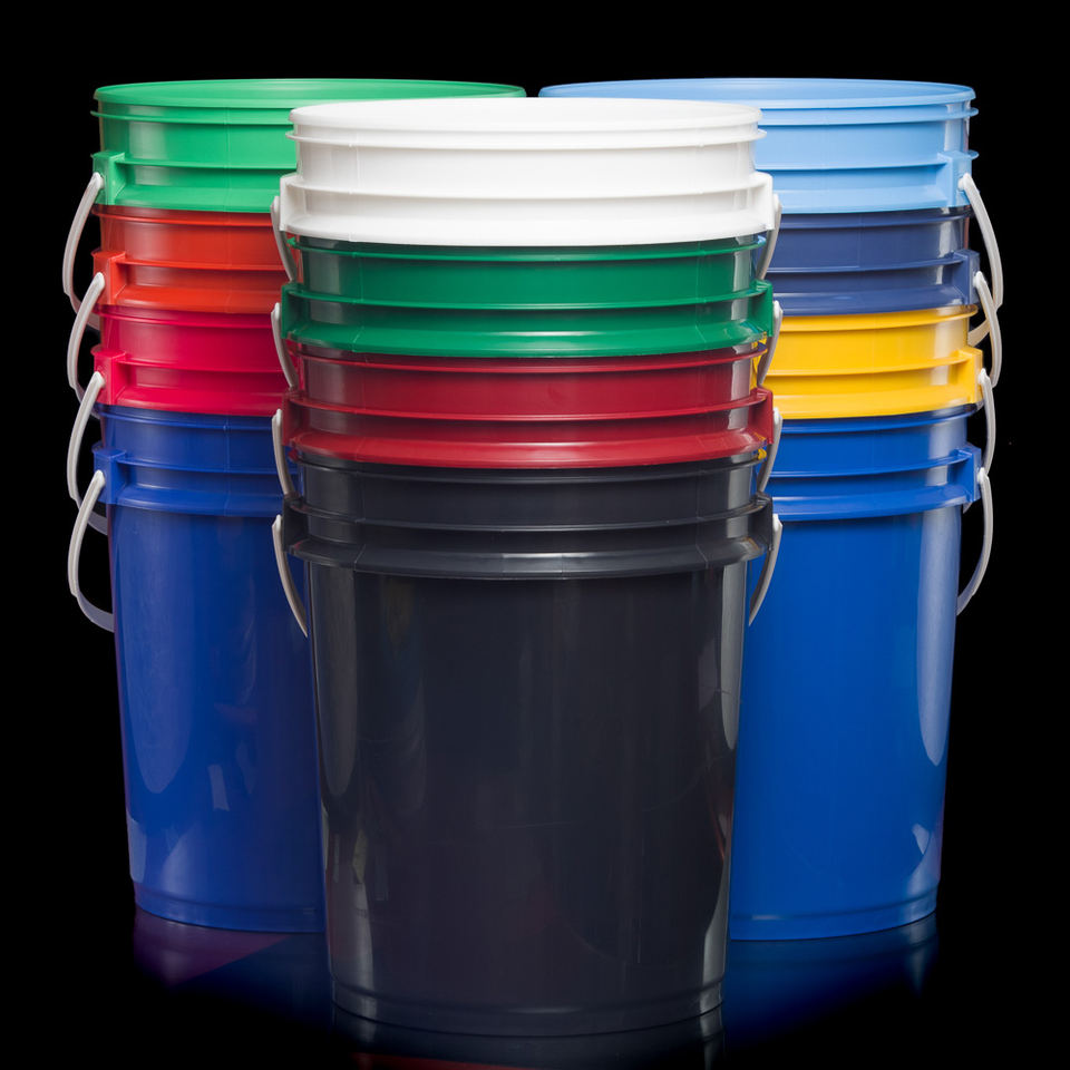 Seaux en plastique de 18 litres avec couvercles à bec verseur