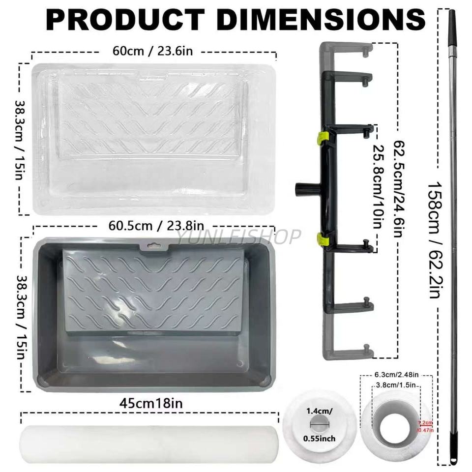 Ensemble de 7 rouleaux à peinture de 18 pouces, perche télescopique de 5,2 pieds, bac et pinceau pour la peinture de grandes surfaces en hauteur