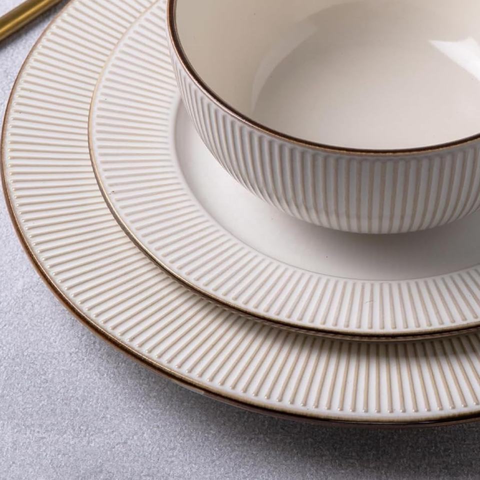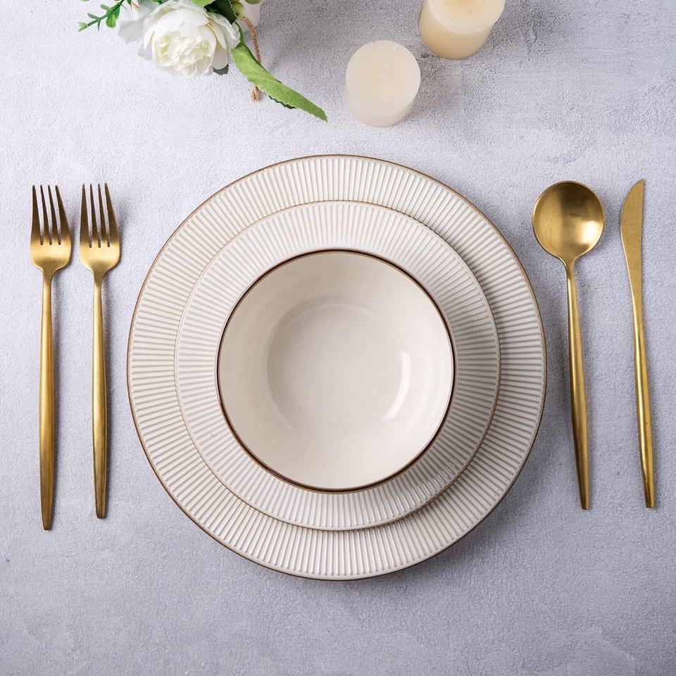 Nom du produit:18 pièces beige en céramique dîner ensemble avec gaufrage