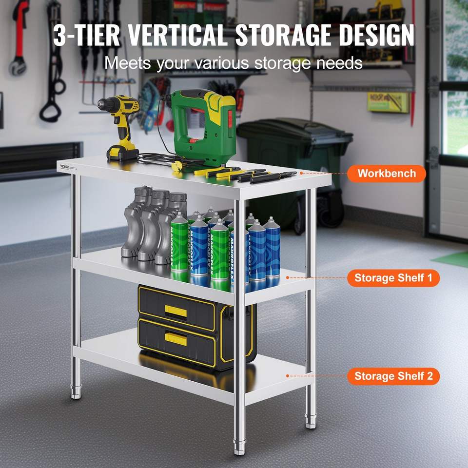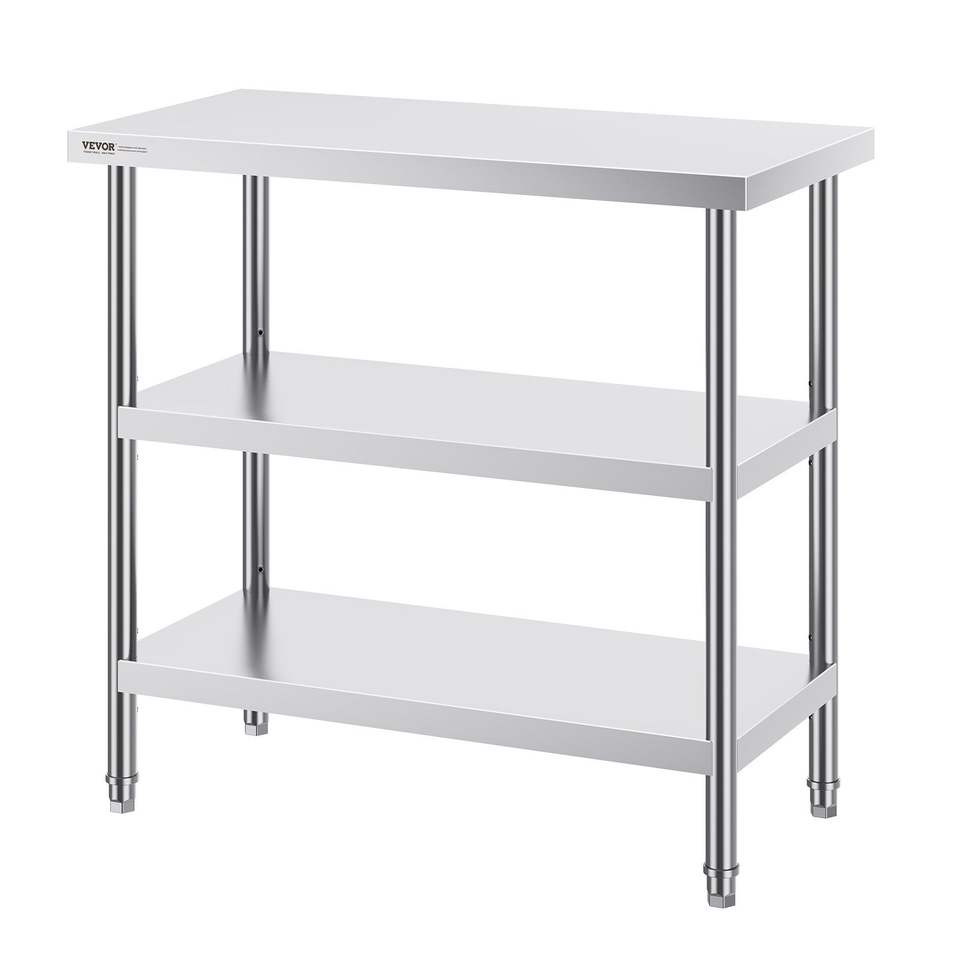 Table de travail de cuisine commerciale en acier inoxydable 18 x 36 x 34 pouces avec 2 étagères inférieures réglables, table de préparation robuste