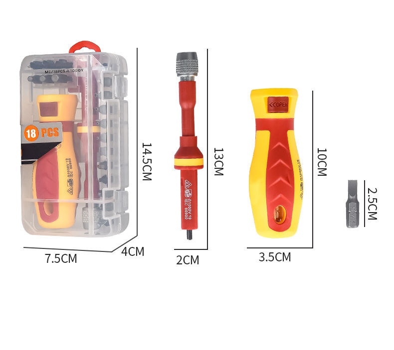 Tournevis combiné rétractable multifonction 18 en 1 et testeur de tension avec plusieurs embouts Ensemble d'outils de réparation à domicile