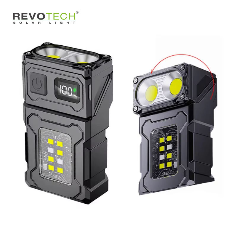 Lampe de poche porte-clés EDC rotative à 180 ° Mini lampe de travail multifonction à sortie USB avec corps de lampe en ABS COB et ampoule LED