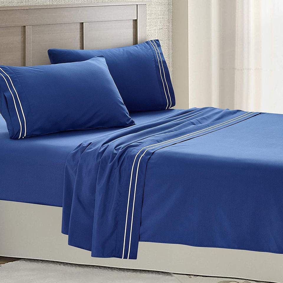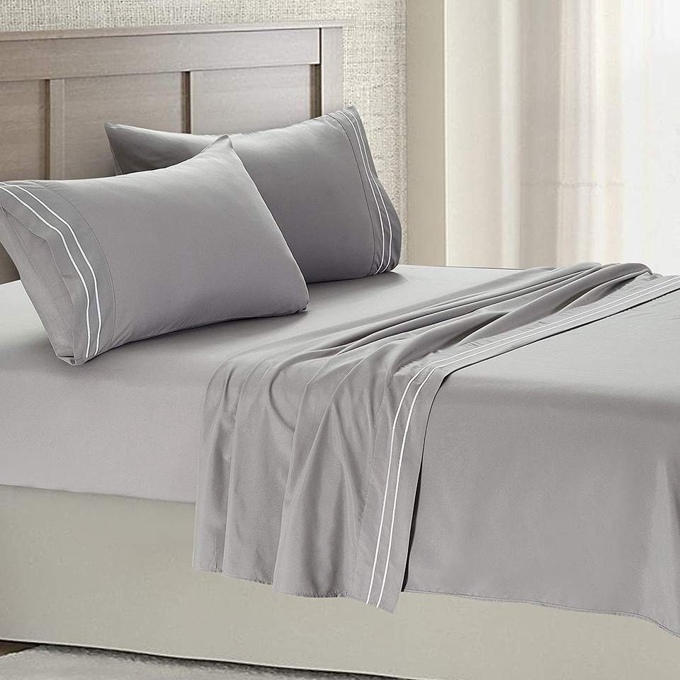 1800 fils 100% tissu microfibre brossé 4 pièces ensemble de draps plats modernes broderie anti-bactéries OEKO-TEX certifié