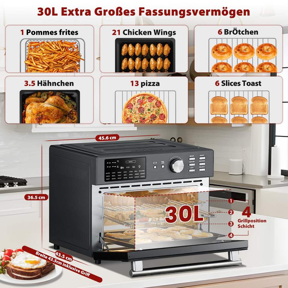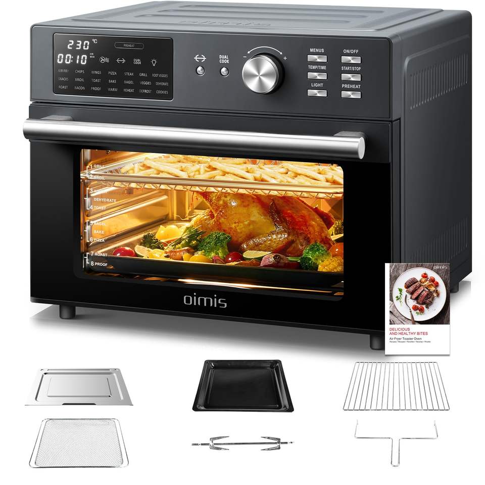 Friteuse à air numérique 18 en 1 de 1800 watts four grille-pain combiné 32Qt déshydrateur de rôtissoire à convection cuisson au gril 90 °-450 °F Temp ménage