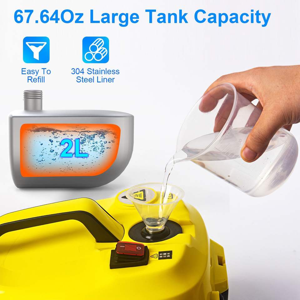Nettoyeur Vapeur Haute Pression 1800W avec Réservoir d'Eau 2L, Roues et Contrôle de Vapeur Progressif
