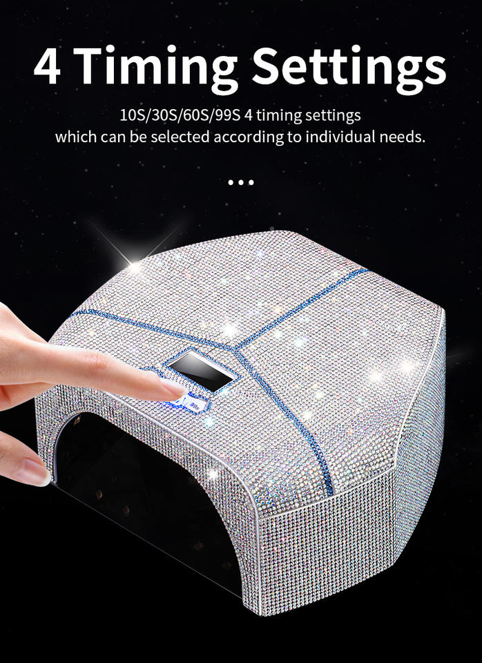 Lampe à ongles LED UV professionnelle haute puissance 180W et sèche-ongles avec capteur automatique, design diamant de luxe pour le durcissement du vernis à gel de salon.