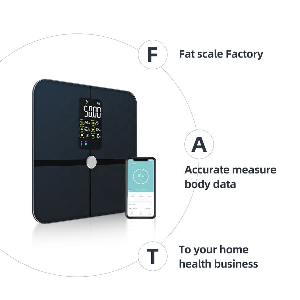 Moniteur numérique de graisse corporelle de 180kg et balance intelligente affichant la fréquence cardiaque et le poids Unité supportée OEM/ODM KG