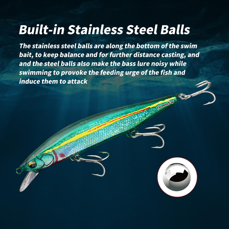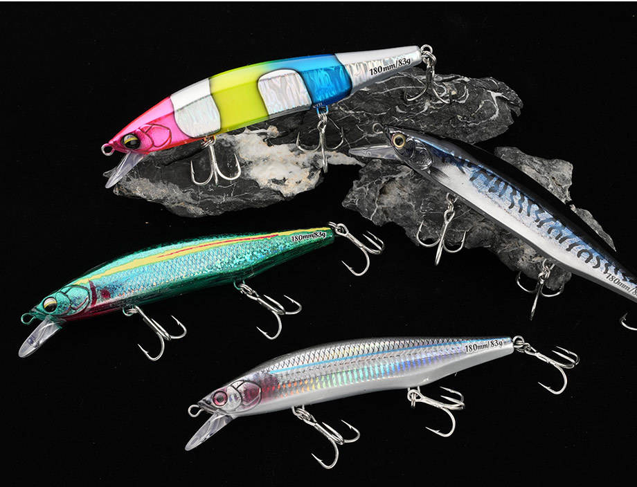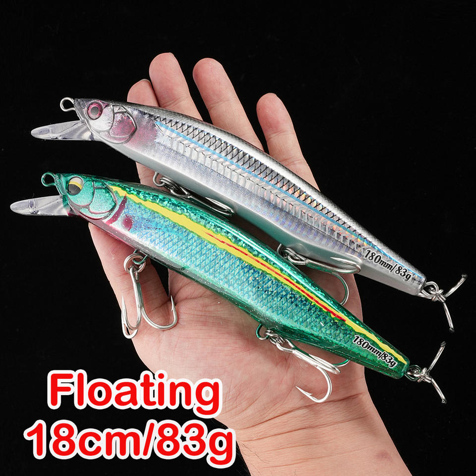 Leurre de pêche flottant Minnow 180 mm 83 g, appât dur en plastique pour bar, thon, GT, maquereau, loup de mer, appâts de pêche en eau salée