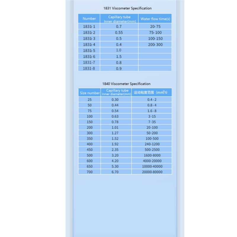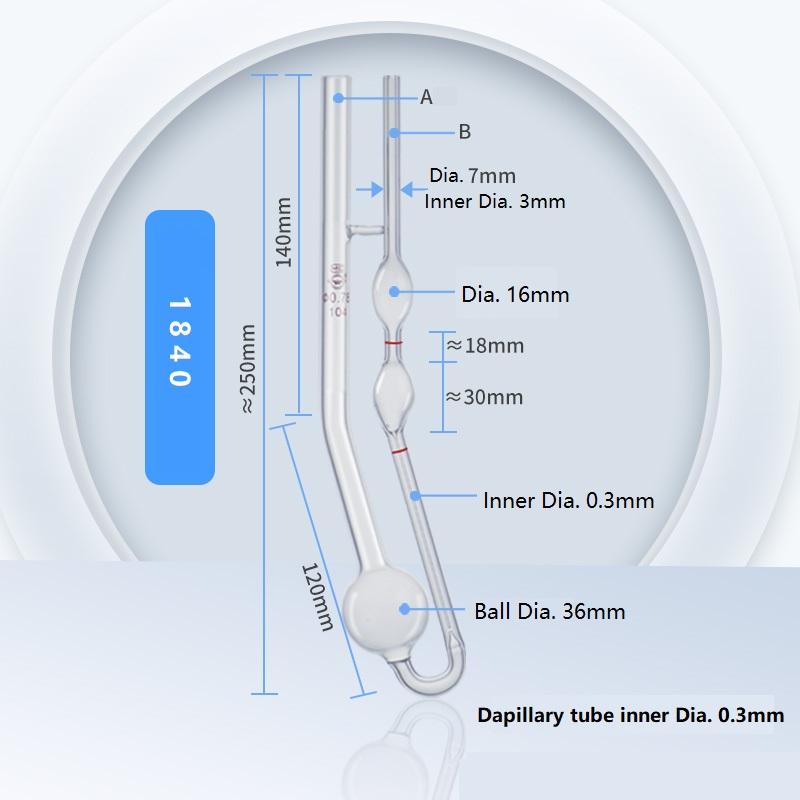 1831 Viscosimètre austénitique capillaire en verre Mouvement 1840 Viscosimètre de type Fenn Cannon Fenske tube à essai