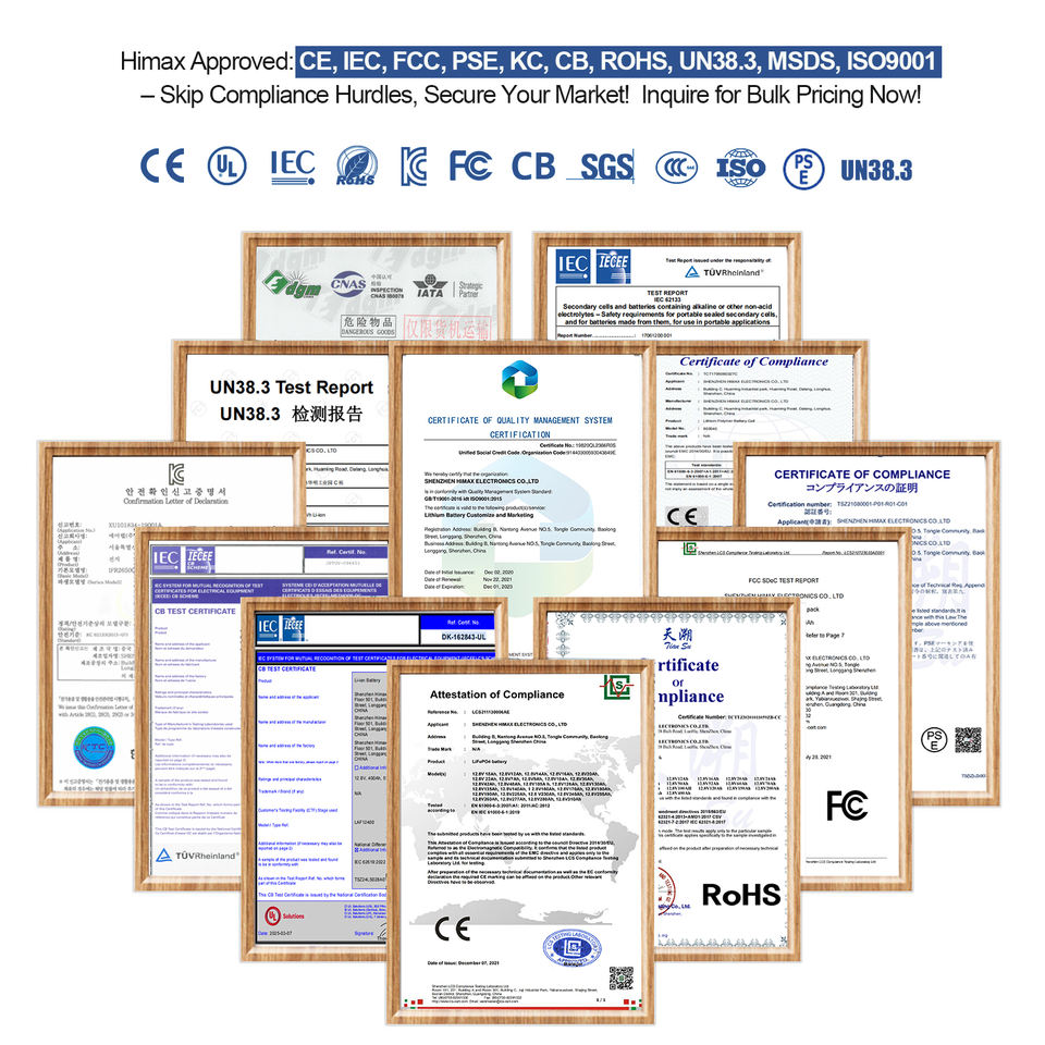 Approuvé CE, RoHS, UN38.3, FDS - Conforme aux normes de sécurité internationales