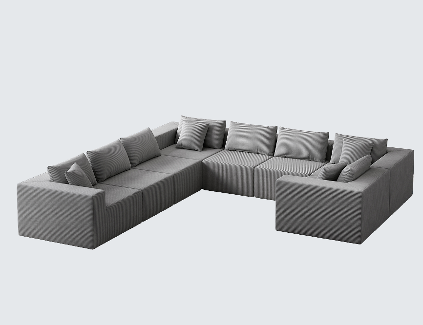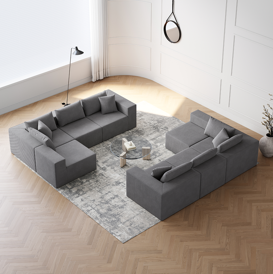Canapé modulaire en velours côtelé de 188 pouces en forme de U, convertible, ensemble de canapés de sol de luxe pour villa, rembourré et écologique pour l'intérieur
