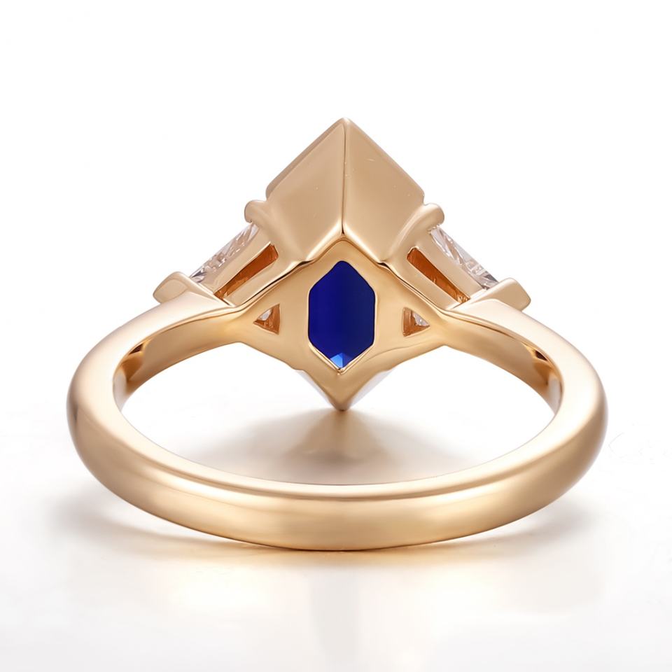 Bague en or jaune massif 18K 14K avec pierre précieuse de laboratoire de couleur bleue, bijoux fins personnalisés pour femmes, cadeau de Noël, à porter au quotidien
