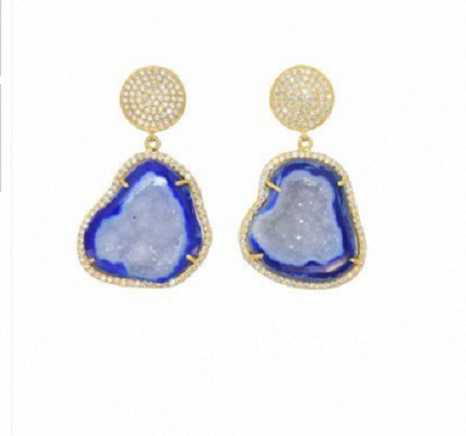 Boucles d'oreilles en argent sterling 925 plaqué or 18 carats avec géode bleue sertie à griffes et zircone cubique intégrée