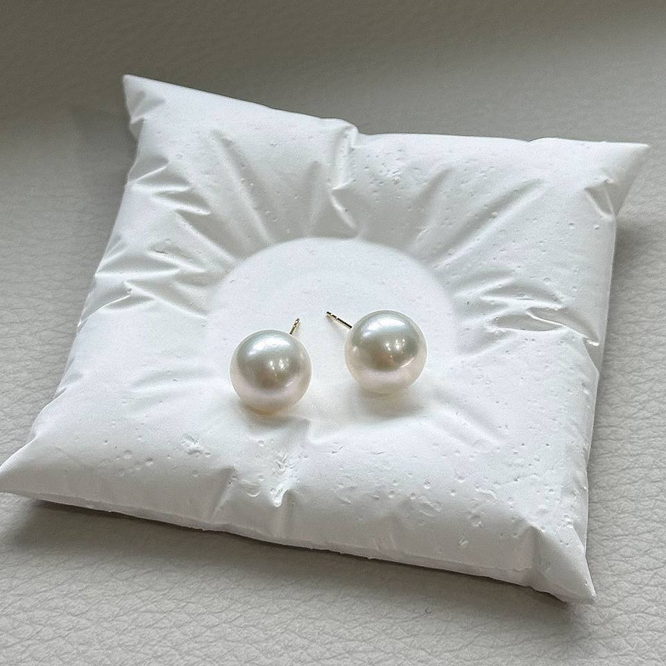 18K Gold 11-12mm Natural Freshwater Pearl Earrings 5A Aurora Round Edison Pearls