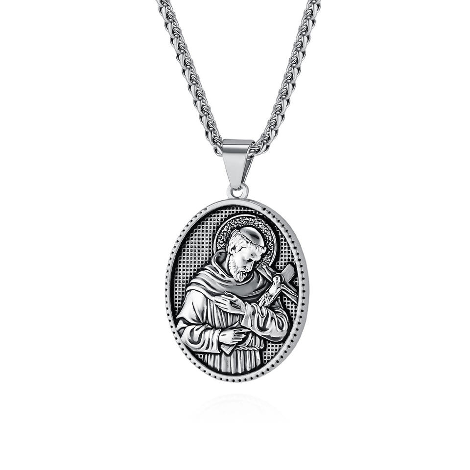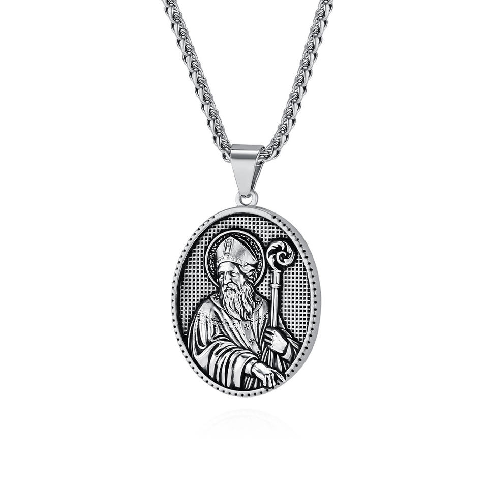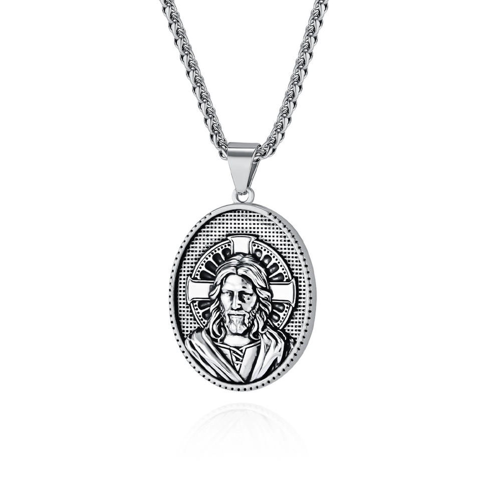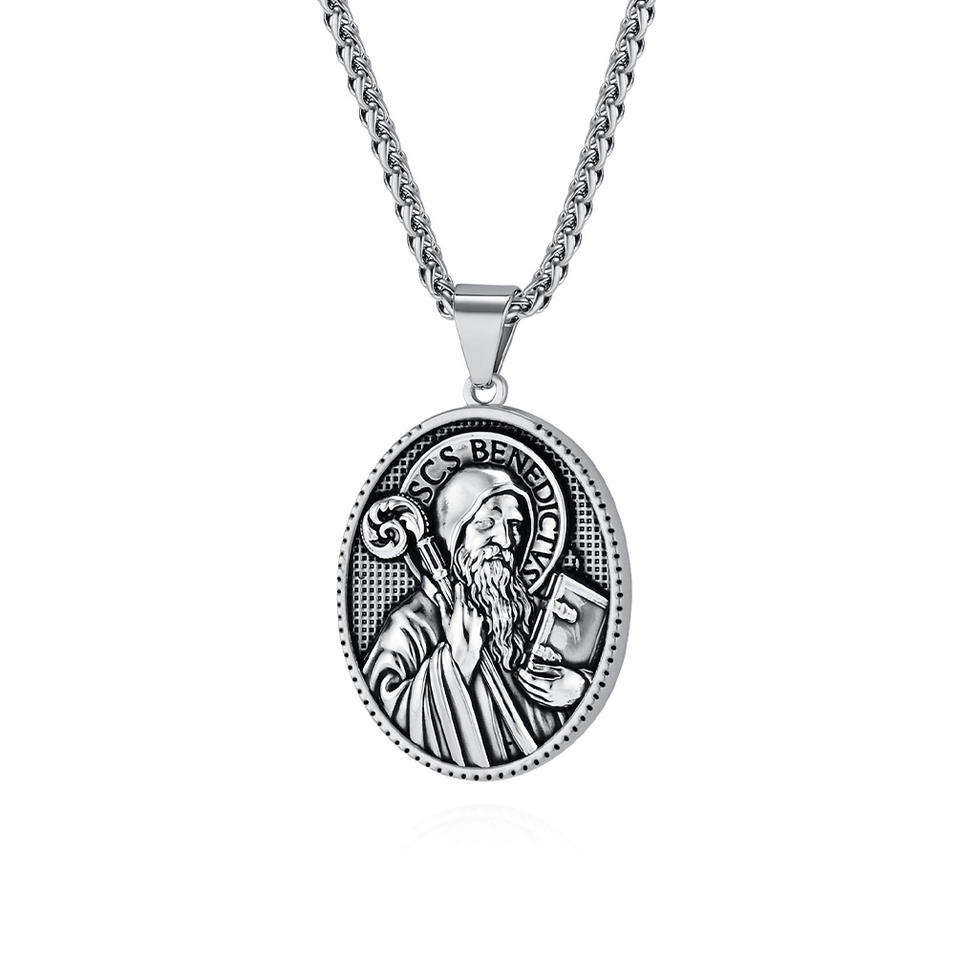 Collier pendentif religieux chrétien en acier inoxydable avec pièce de monnaie en or 18 carats, Vierge Marie Jésus, pour l'anniversaire des femmes