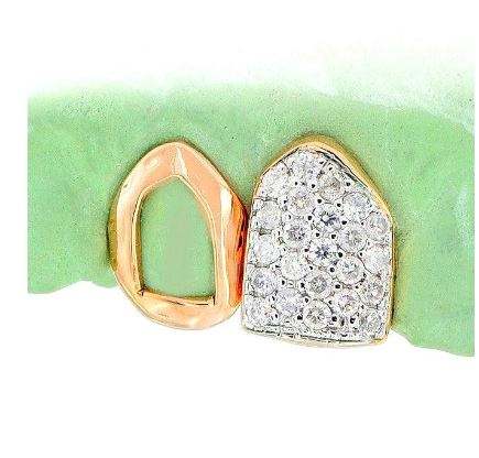 Bijoux de piercing fin à 2 dents en or 18 carats avec double fenêtre personnalisée Grillz et pierre de moissanite à face ouverte