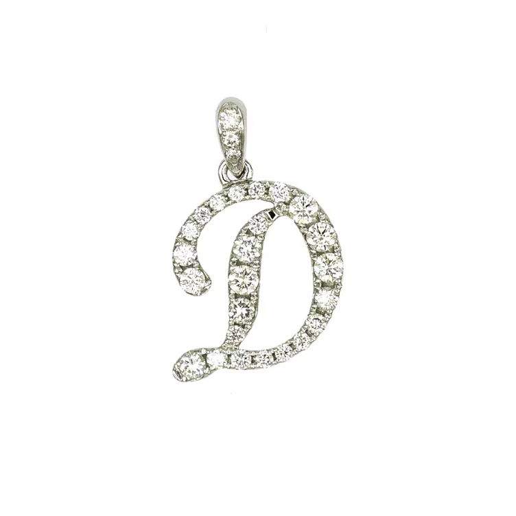 Pendentif initial D en or 18 carats avec diamants 0,421 ct, 27 diamants, 1,47 g, collection de bijoux fins personnalisés