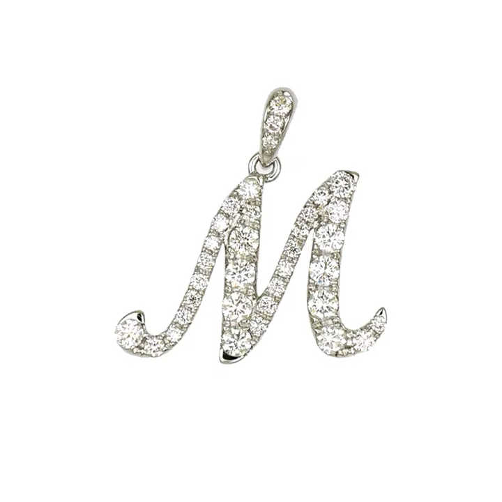 18K Gold Diamond Initial Pendant 0.511ct 35 Stones 1.87g Letter M Shape Fine Jewelry Collection