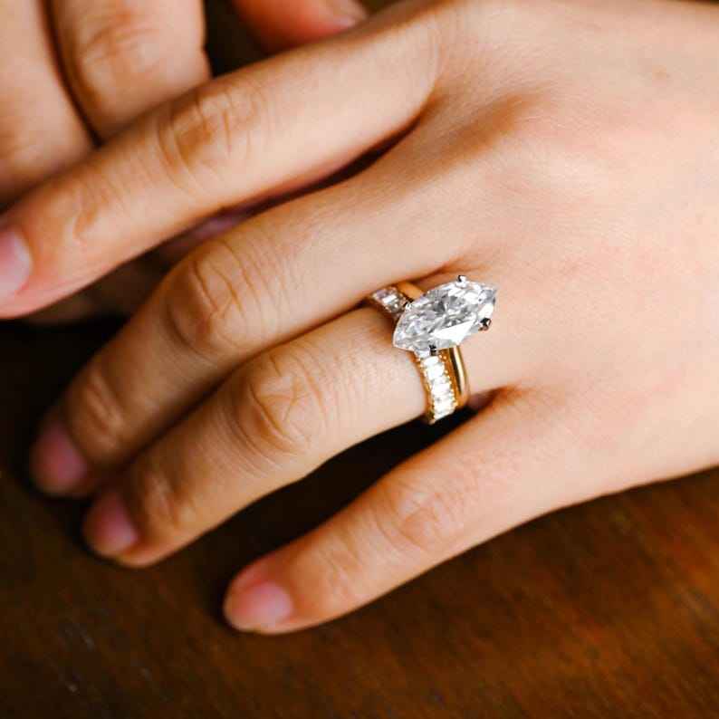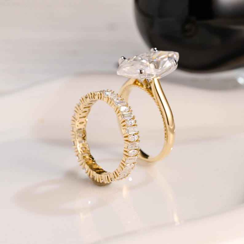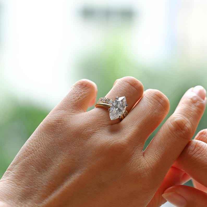Bague solitaire en or 18 carats avec diamant taille marquise de 1,52 ct cultivé en laboratoire avec émeraude et bande de coupe marquise cadeau de fête de mariage parfait
