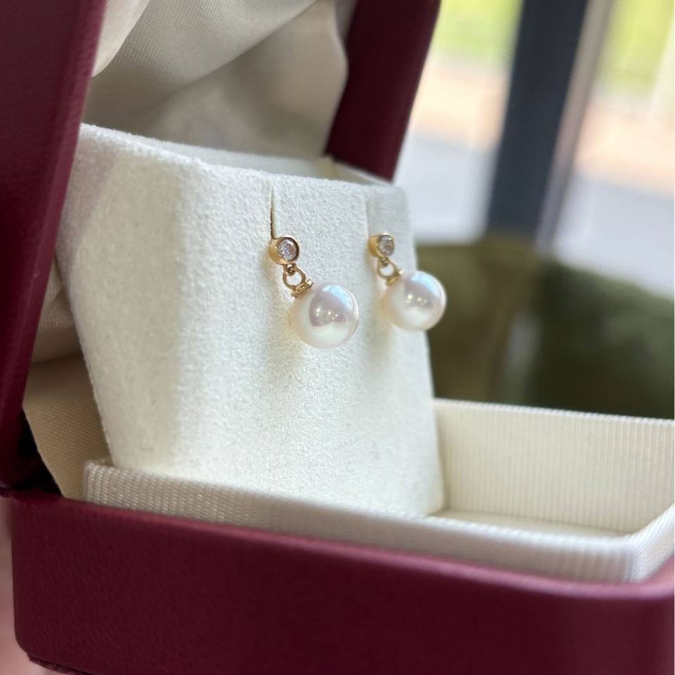 Boucles d'oreilles pendantes en or 18 carats, perles d'eau douce naturelles de 7 à 8 mm, perles rondes Akoya Aurora 5A