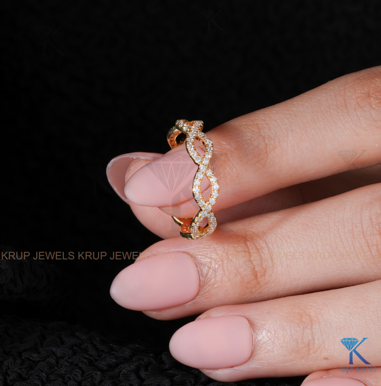 Bague d'éternité en or 18 carats avec dentelle infinie et diamants pavés, bague empilable intemporelle pour femme, cadeau de mariage, bijoux fins