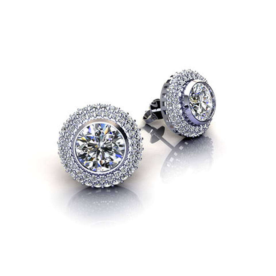 Boucles d'oreilles clous en or 18 carats avec micro-pavé et double halo de diamants de laboratoire taille ronde