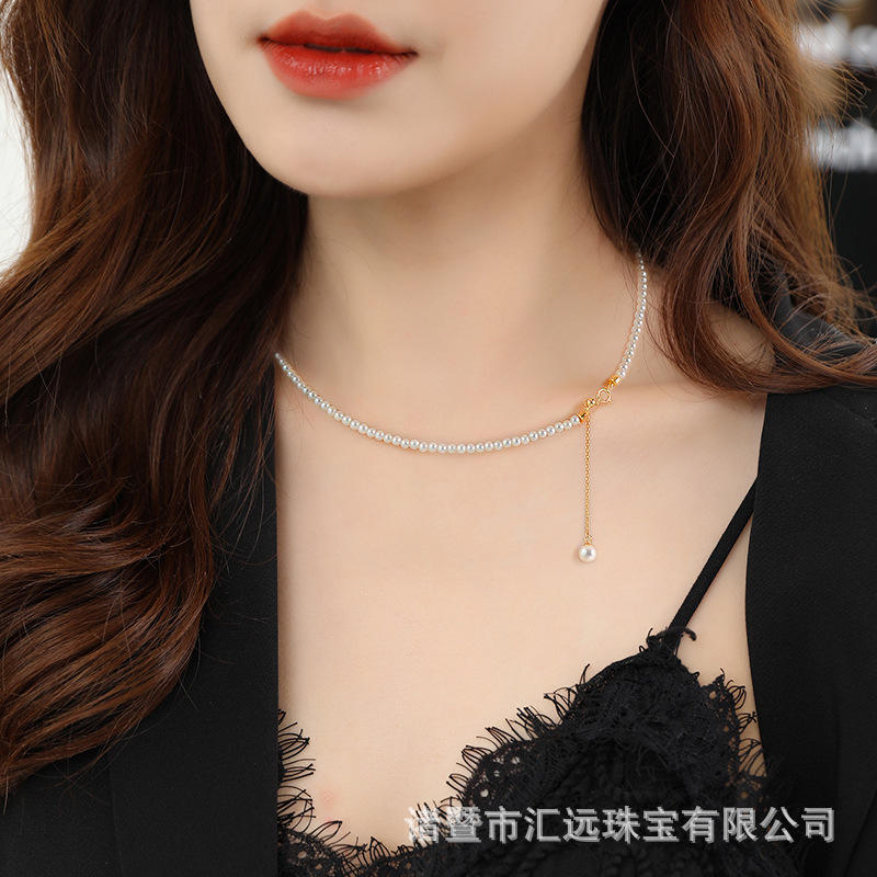 Collier pendentif en or 18 carats, design de niche, perle d'eau douce naturelle haut de gamme, grain de millet de 3 à 5 mm, chaîne de clavicule pour pulls