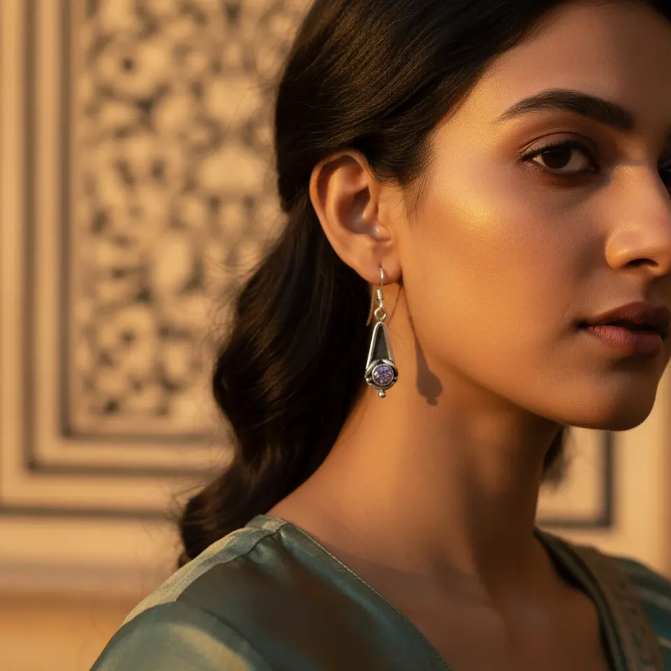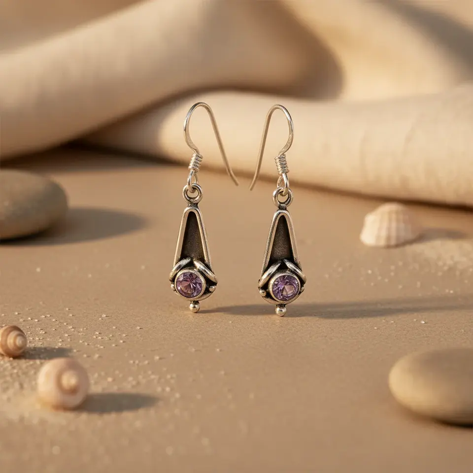 18K Gold Plated 925 Silver Amethyst Drop Dangle Earrings for Women White Gold Pendant Jewelry with Diamond and Pearl