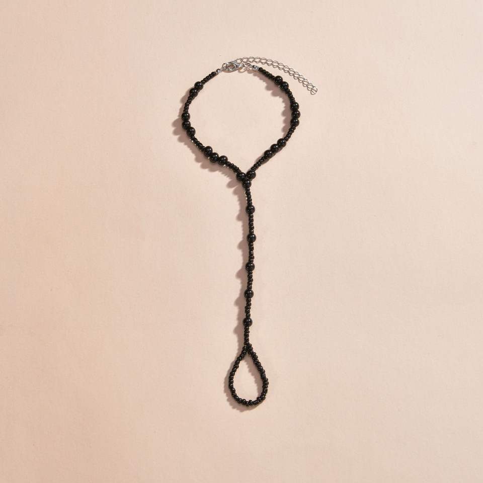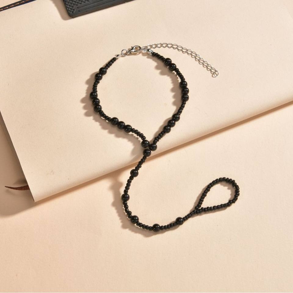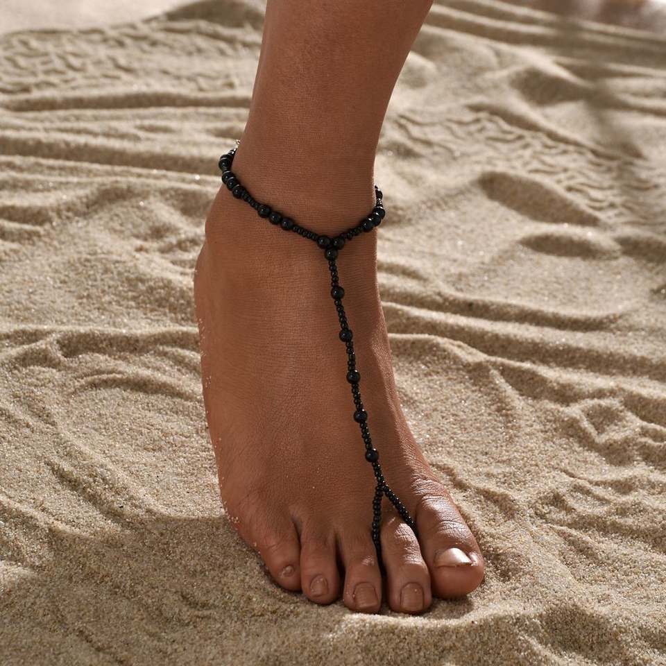 Chaîne de cheville en alliage plaqué or 18 carats avec motif cœur, pour femme et homme, chaîne de pied perlée noire pour mariage et anniversaire