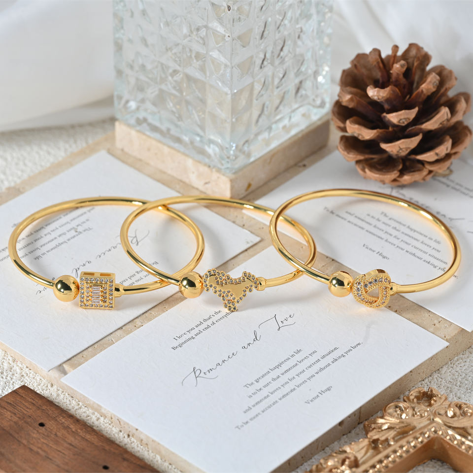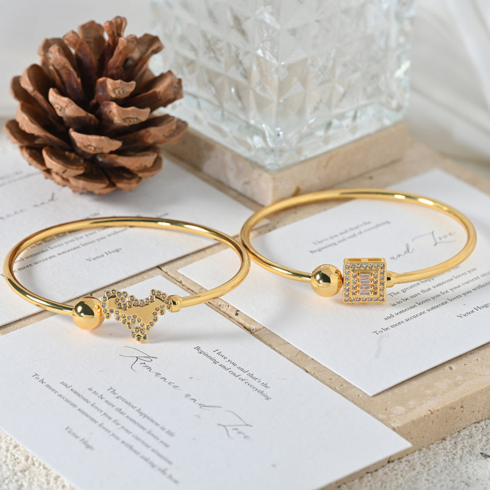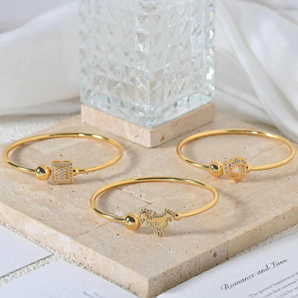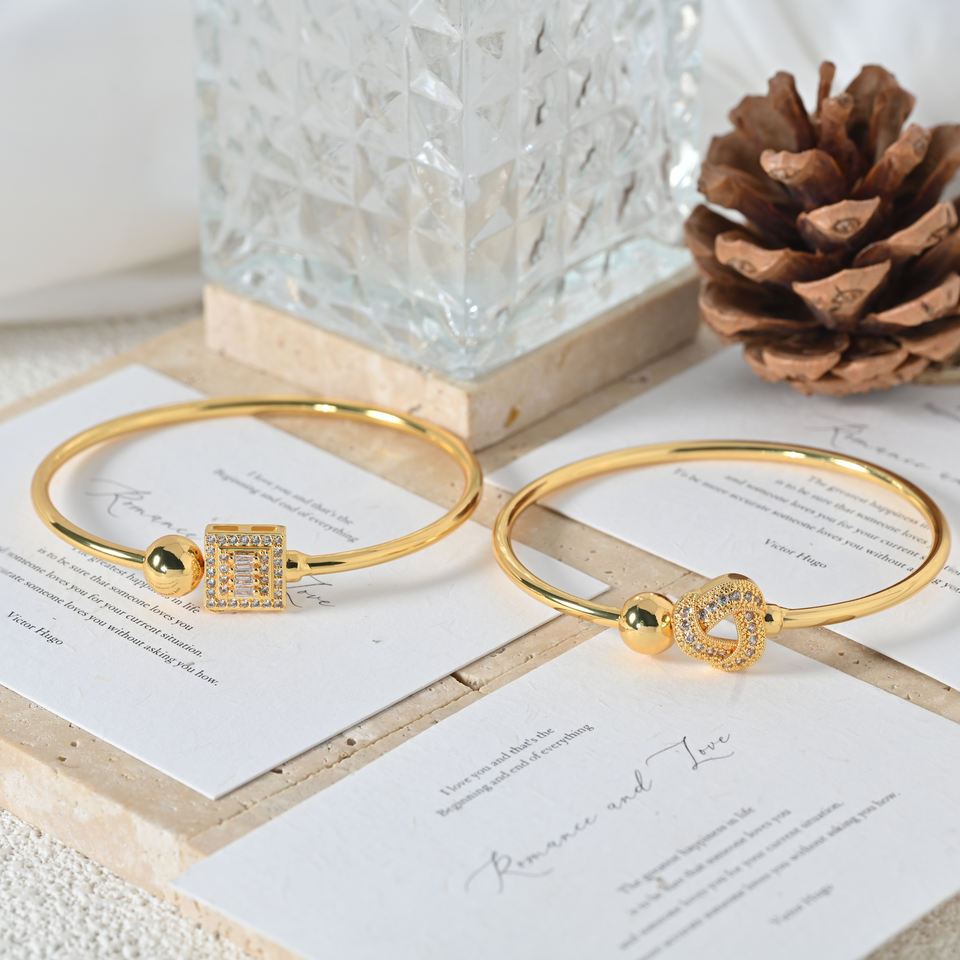Bracelets joncs ajustables en or 18 carats plaqué or avec breloques pavées de zircones cubiques pour femmes, bijoux de luxe, cadeau, Pulsera Corazones